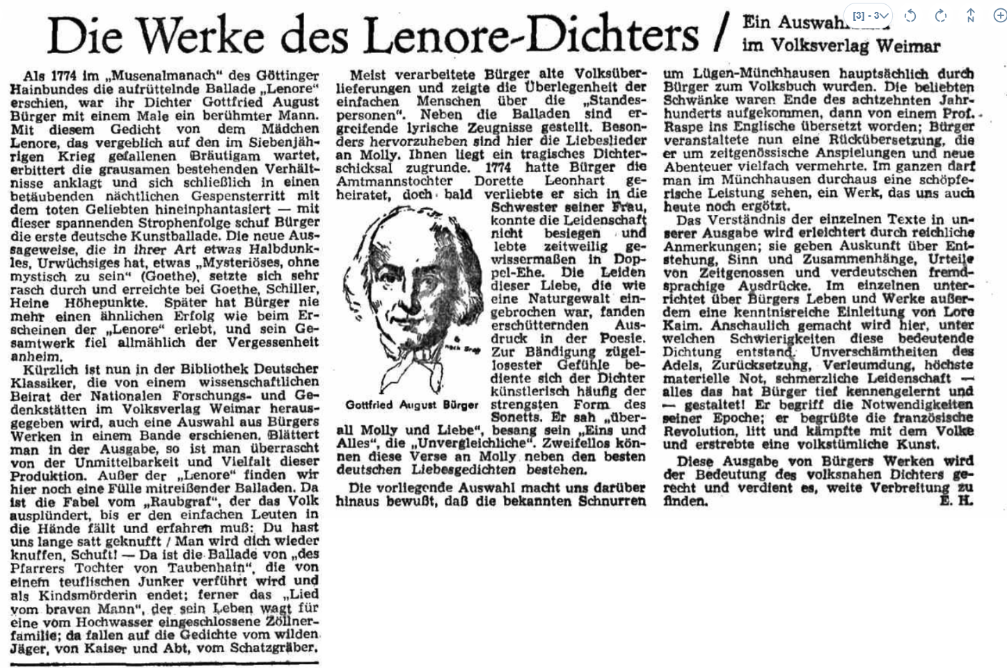 Die Werke des Lenore-Dichters. In: Berliner Zeitung, 19.05.