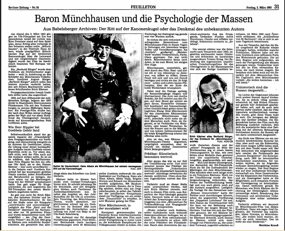Baron Münchhausen und die Psychologie der Massen. In: Berliner Zeitung, 5.03.