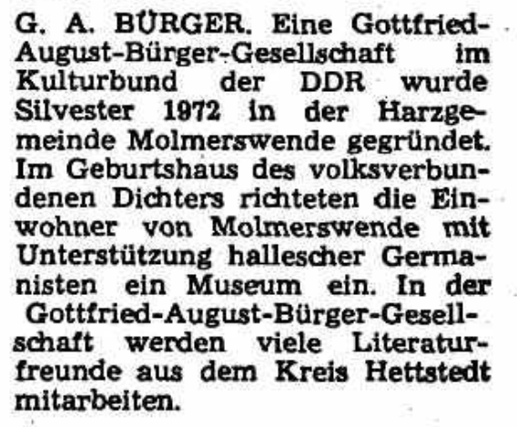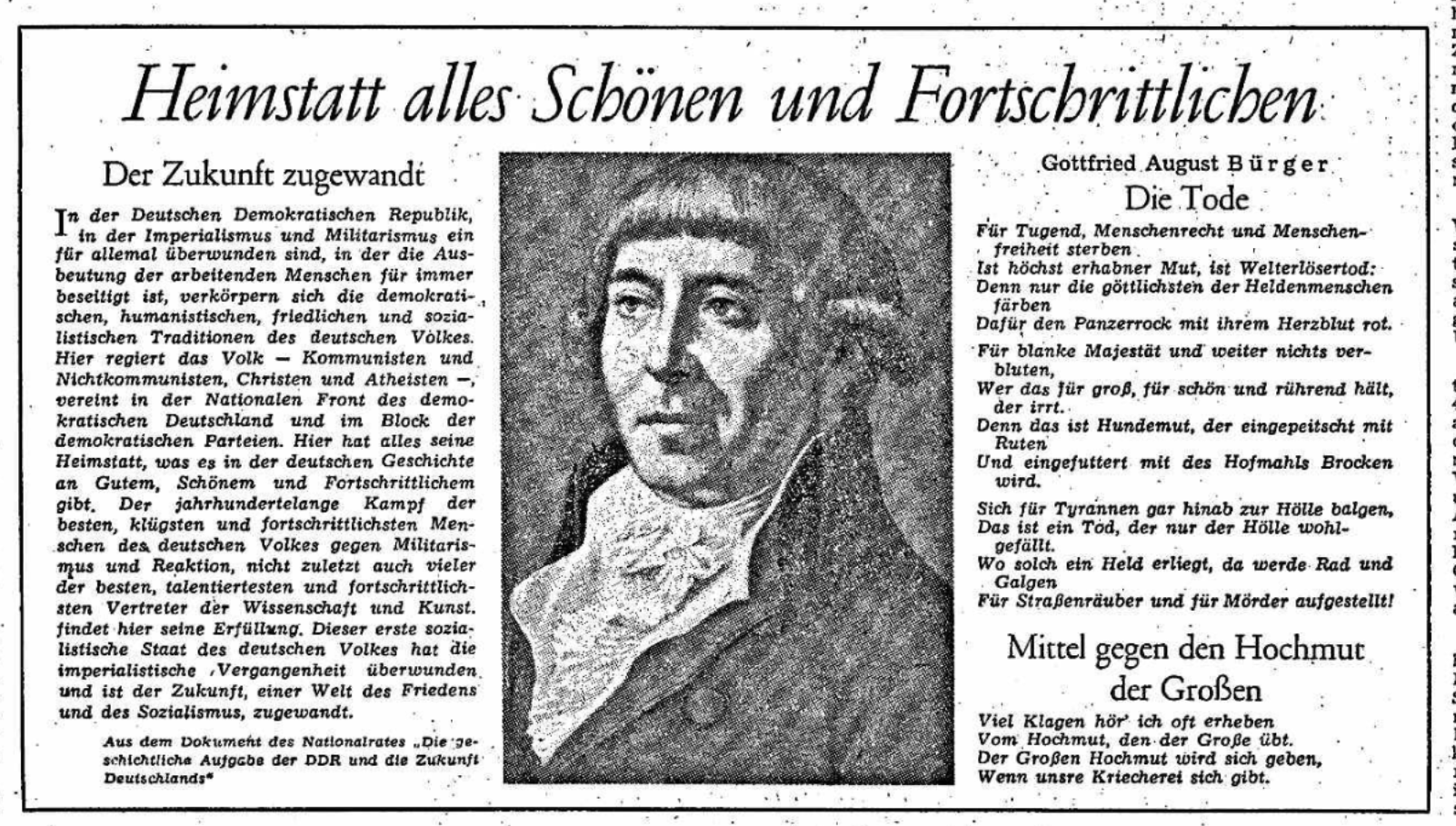G.A. Bürger - ein plebejischer Dichter. In: Programmerklärung des Ministeriums für Kultur der Deutschen Demokratischen Republik zur Verteidigung der Einheit der deutschen Kultur. Neue Deutsche Literatur, Beilage zu Heft 5, Jahrgang 1954 (Sammlung Helmut Scherer)