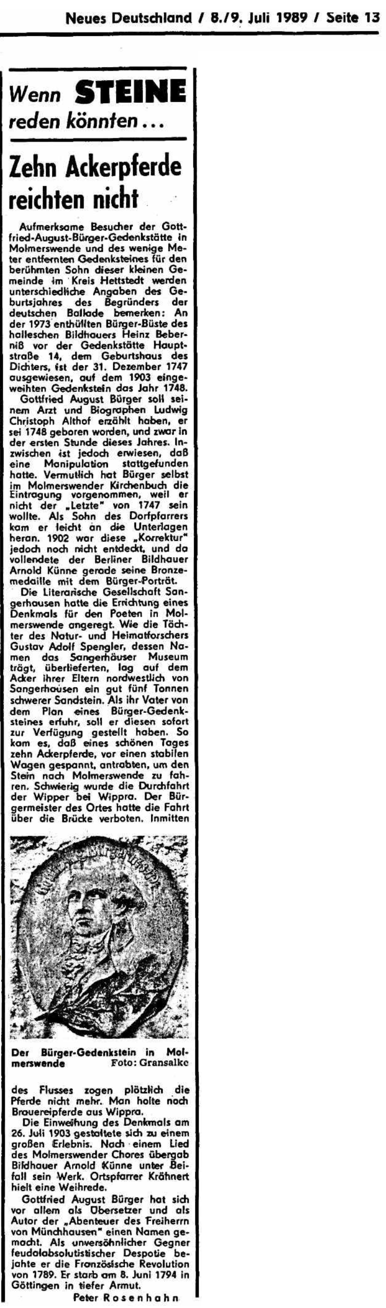 Ein Stein in Molmerswende. In: Mitteldeutsche Zeitung. (Sammlung Helmut Scherer)