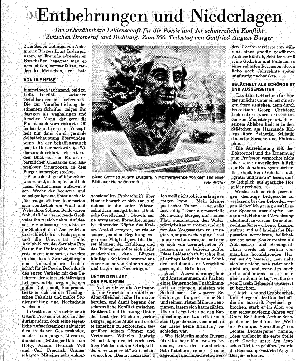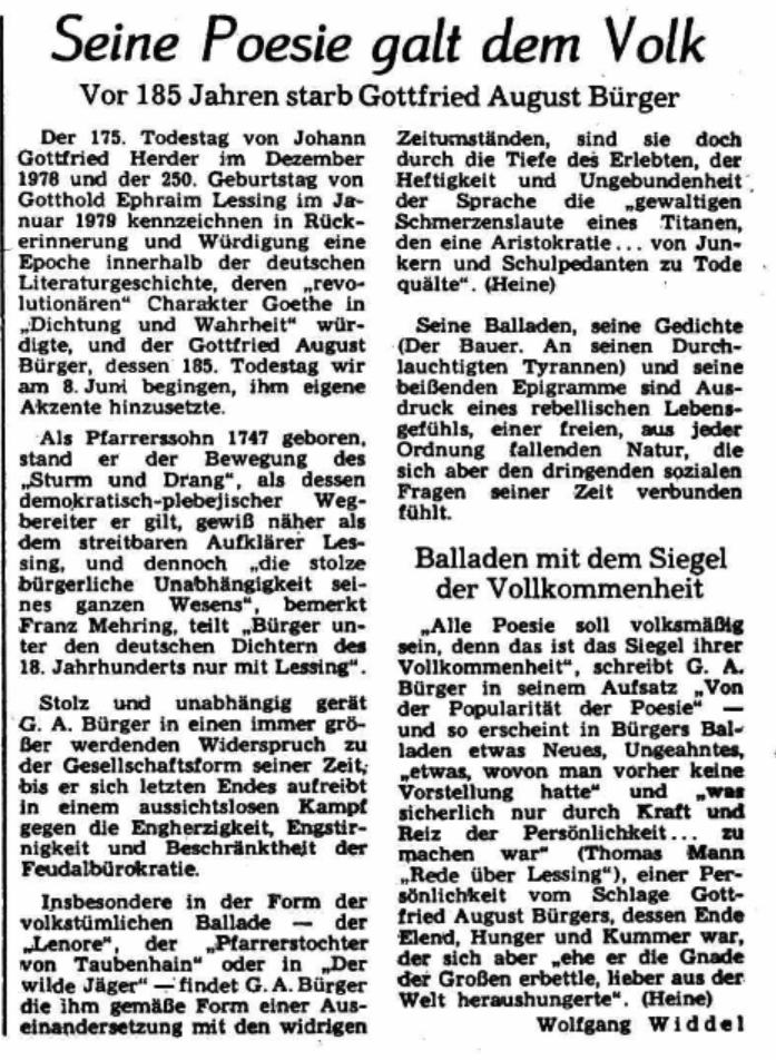 Mit den Waffen des Geistes, Anmerkungen zu Gottfried August Bürger anläßlich seines 200. Todestages.