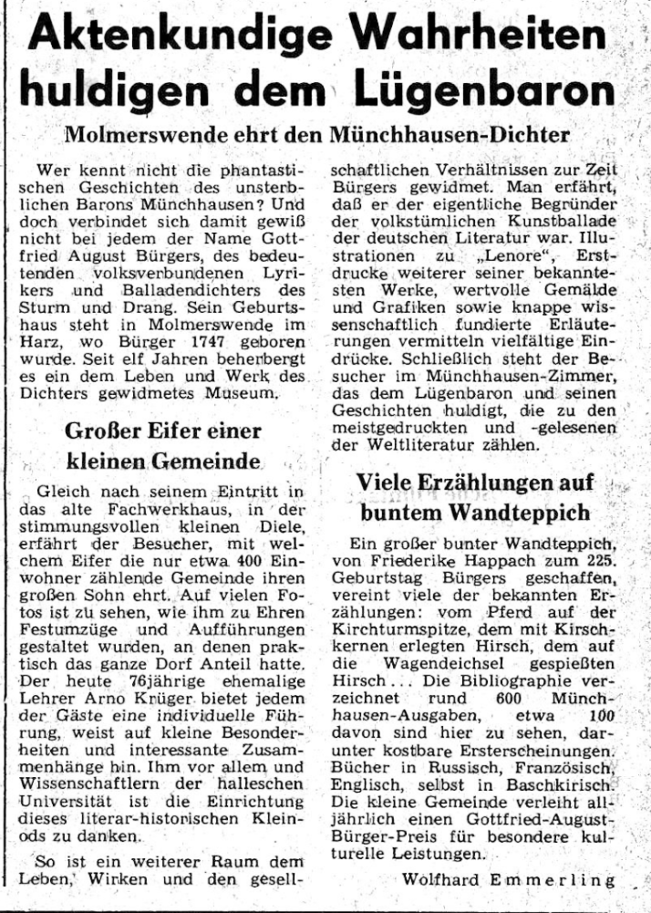 Zum 200. Todestag von Gottfried August Bürger. In: Unser Harz. (Sammlung Helmut Scherer)