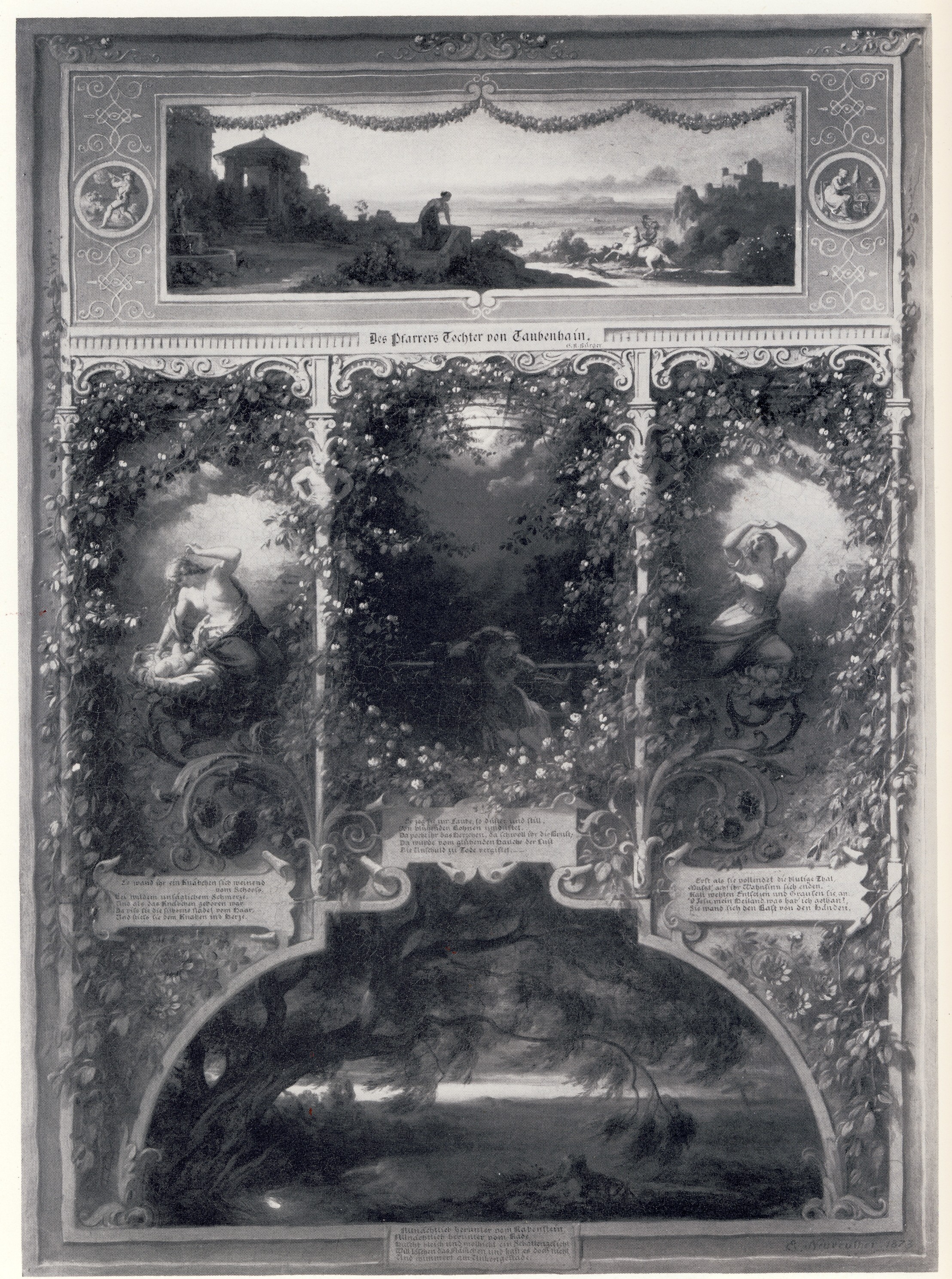 Des Pfarrers Tochter von Taubenhein (!) von Bürger ; Ilustracja do piesni G.A.Bürgera "Córka pastora z Taubenhein" Datowanie zabytku: 1835 (plyta) ; 1844 (rycina)