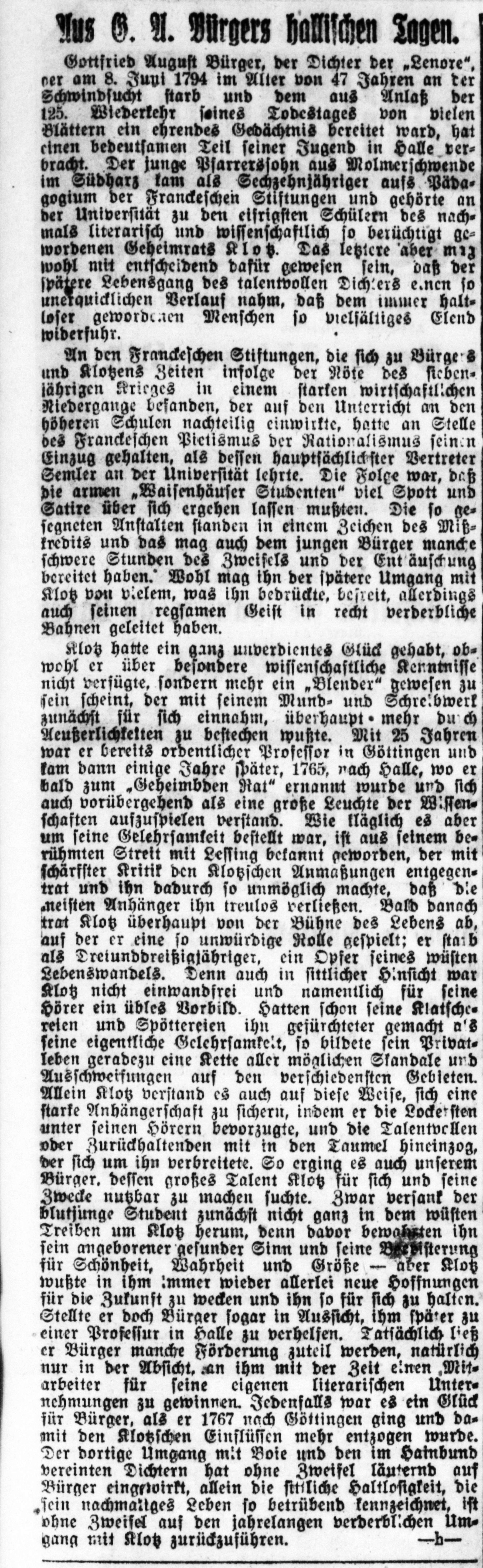 Aus G. A. Bürgers hallischen Tagen. In: Hallische Nachrichten, 14.08.